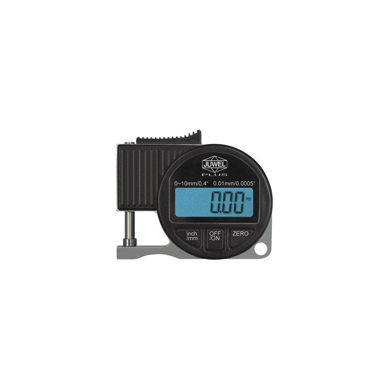 Tipo digitale Con stelo e componenti principali in acciaio inossiddabile Lettura di mm (0,01 mm) - .0005 pollici Campo di misura 0÷10 mm - Precisione 0,02 mm Esecuzione tascabile con tasto per il sollevamento dello stelo - Profondità arco 11 mm Funzioni: ON/OFF, ZERO e mm/inch Ampio display con cifre altezza 10 mm - Alimentazione tramite batteria LR 44 da 1,5 V