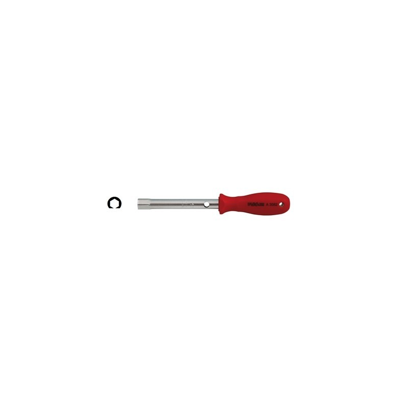 Con impugnatura in resina sintetica e foro trasversale sul tubo per la manovra con spina e per aumentare notevolmente il momento torcente
