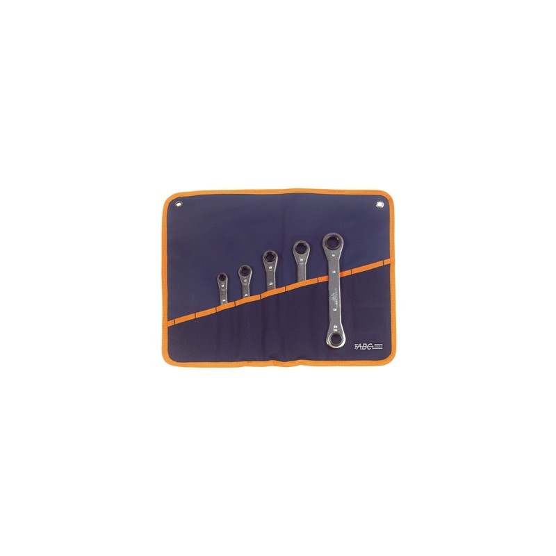 Per uso destro e sinistro Tipo doppio leggero - Made in U.S.A. In lamiera di acciaio speciale - Cromate - Esecuzione piatta - Reversibili Bocche esagonali con profilo «Flank Drive» da 7x8÷11x12 e 13x14 mm Bocche poligonali 12x13 e 14x15÷19x21 mm A 3089 - Con teste diritte - pz. 6 A 3090 - Con teste piegate a 25° - pz. 6 Serie di 5 chiavi a cricchetto (mm 7x8 - 9x10 - 11x12 - 13x14 - 15x17) In borsa di tessuto avvolgibile A 3089/5 - Con chiavi A 3089 con teste diritte A 3090/5 - Con chiavi A 3090 con teste piegate a 25°