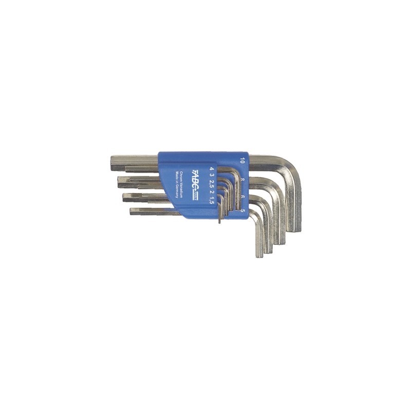 In acciaio al cromo-vanadio - Per viti con testa ad esagono incassato Tipo su supporto di plastica MISURE METRICHE A 3107/34 gr. 6 - - Con chiavi A 3106/2 - Esecuzione nichelata lucida - pz.1 A 3107/34 gr. 7, 9 e 10 - - Con chiavi A 3106/1 - Esecuzione zincata - pz. 1