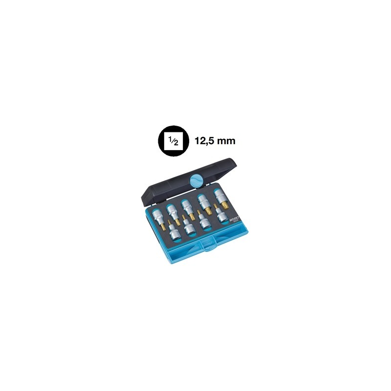 Attacco - In acciaio al cromo-vanadio - Esecuzione cromata - Punte brunite Tipo per viti con impronta «TORX» Serie di 9 inserti A 3177/5 gr. T20 - T25 - T27 - T30 - T40 - T45 - T50 - T55 - T60 In valigetta in ABS resistente agli urti con alloggiamento per gli utensili in materiale espanso, adatto per occupare 1/9 dei cassetti dei carrelli