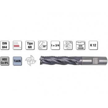 Fresa universale ideale per scanalature in tutti i materiali con resistenza fino a 1600 N/mm², e per lavorazioni di foratura, fresatura e a tuffo inclinato