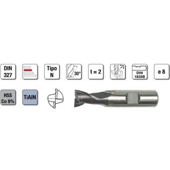 Fresa universale ideale per scanalature in tutti i materiali con resistenza fino a 1600 N/mm², e per lavorazioni di foratura, fresatura e a tuffo inclinato