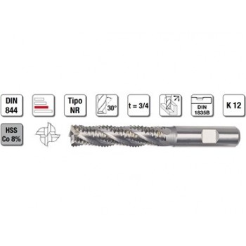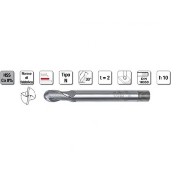 Fresa universale ideale per scanalature in tutti i materiali con resistenza fino a 1600 N/mm², e per lavorazioni di foratura, fresatura e a tuffo inclinato