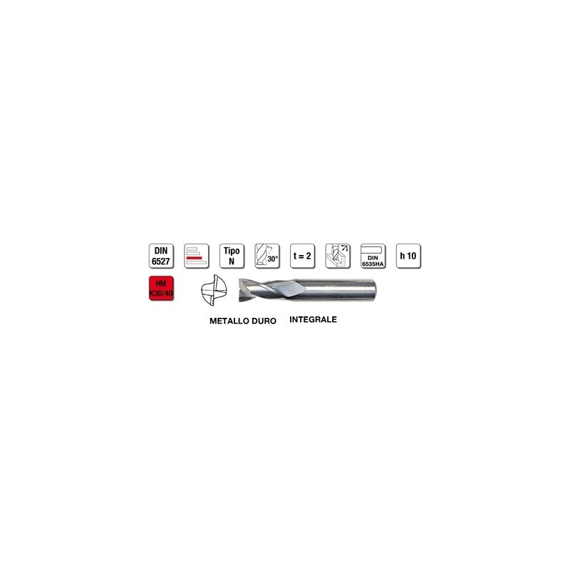 Fresa universale ideale per scanalature in tutti i materiali con resistenza fino a 1600 N/mm², e per lavorazioni di foratura, fresatura e a tuffo inclinato