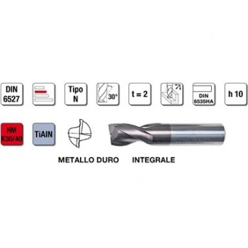 Fresa universale ideale per scanalature in tutti i materiali con resistenza fino a 1600 N/mm², e per lavorazioni di foratura, fresatura e a tuffo inclinato