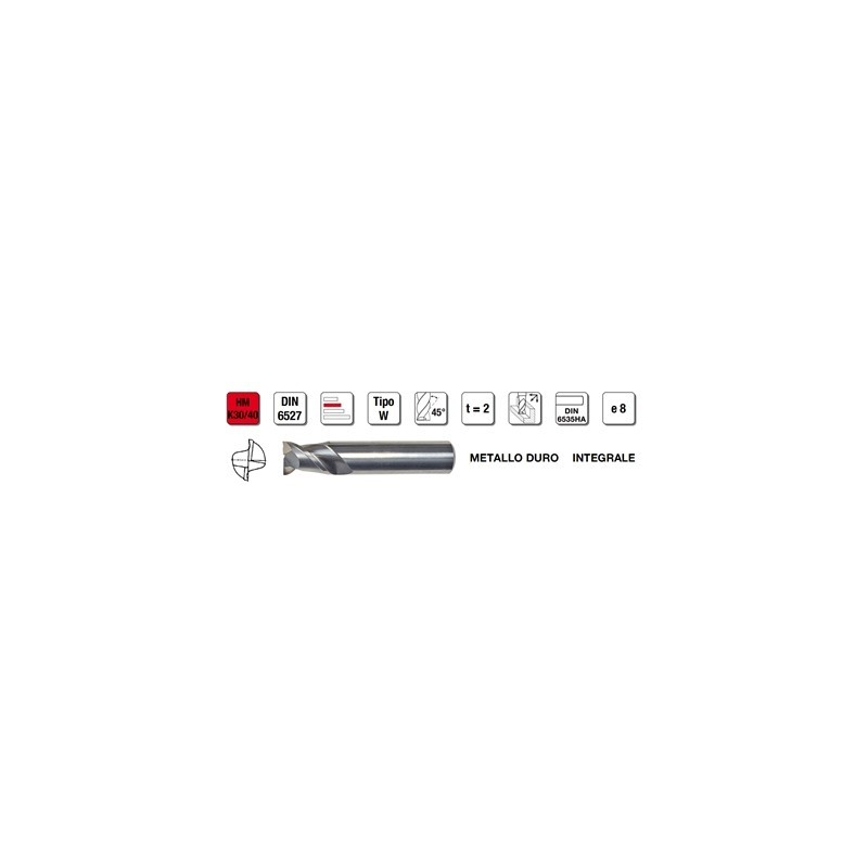 Fresa particolarmente indicata per la scanalatura e la sgrossatura di alluminio e metalli non ferrosi con resistenza fino a 600 N/mm²