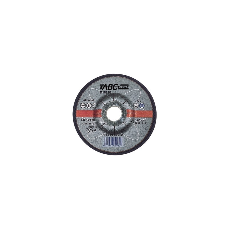 Rinforzati con fibre di vetro ad alta resistenza - Elevato potere abrasivo Bilanciati staticamente e dinamicamente - Velocità periferica duso 80 m/s Foro Ø 22,23 mm (16 mm per Ø 100 mm) Tipo per sbavare In confezione indivisibile da 10 pz. Esecuzione a centro depresso - Spessore 6 mm D 9816 - Per acciaio D 9817 - Per acciaio inossidabile - INOX D 9818 - Per alluminio Esecuzione a centro depresso per alluminio Spessore 6 mm