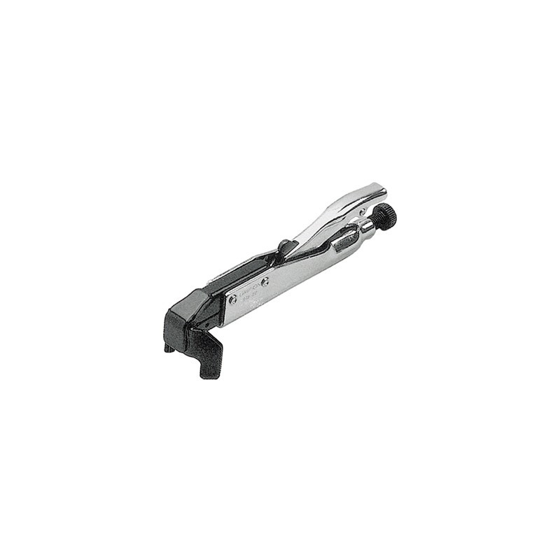 Con una ganascia superiore fissa ed una inferiore mobile ad apertura rapida con leva a scatto