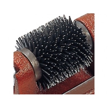 Montano rotelle in acciaio D 9843/5, a denti diritti montate alternate con fascia di larghe dimensioni su un albero rotante con cuscinetti a sfere, protetti dalla polvere