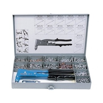 Completa di 4 testine per rivetti di acciaio fino Ø 4 mm e di alluminio fino Ø 5 mm