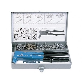 Completa di 3 testine per rivetti di acciaio fino Ø 4 mm e di alluminio fino Ø 5 mm - Corsa 8 mm