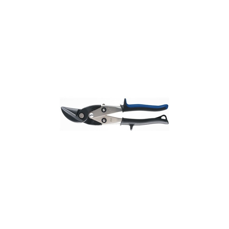 Teste stampate a caldo, taglienti a doppia tempera - Con molla e fermo di chiusura Manici rivestiti in materiale bicomponente antiscivolo, di forma ergonomica, con paramani In acciaio forgiato al cromo molibdeno, temperato - Durezza HRc 60-62 Per il taglio di lamiera ad alta resistenza fino allo spessore di 1,2 mm (max. 1,5 mm) e di lamiera inox fino allo spessore di 0,7 mm In acciaio forgiato, temperato - Durezza HRc 58-60 Per il tagliodi lamieraad alta resistenza fino allo spessore di 1,5 mm (max. 1,8 mm) e di lamiera inox fino allo spessore di 1,2 mm Per contornare e tagli passanti Con zigrinatura su un tagliente per una migliore presa sulla lamiera ed evitare pericolosi scivolamenti Lunghezza totale 240 mm - Taglienti lunghezza 40 mm - Taglio destro